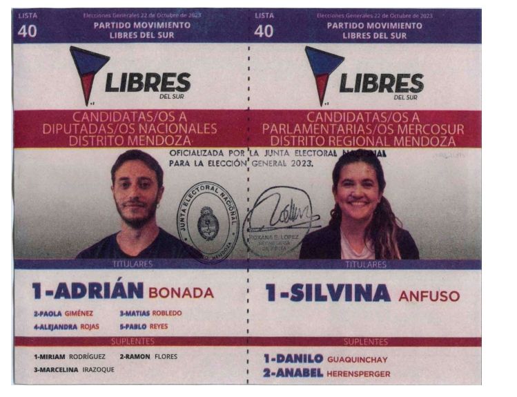 En tanto, la agrupación Libres del Sur, que en la categoría de diputados nacionales y parlamentarios regionales del Mercosur superó el fitro de las PASO, lleva a Silvina Anfuso como aspirante mendocina al Parlasur.