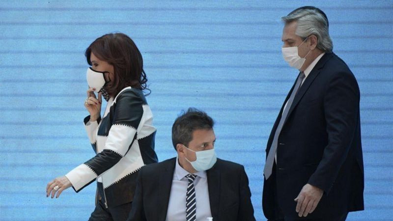 Sergio Massa (izq.), Alberto Fernández y Cristina Fernández.