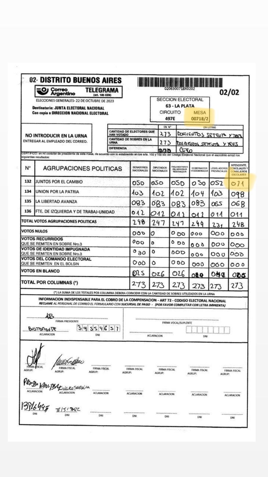 Finalmente, el funcionario afirmó: “Seguimos trabajando acta por acta, urna por urna. Estamos cruzando todas las actas con los datos que están cargados en la página oficial. El lunes vamos a ir con los fiscales y apoderados a defender el voto de los platenses”.