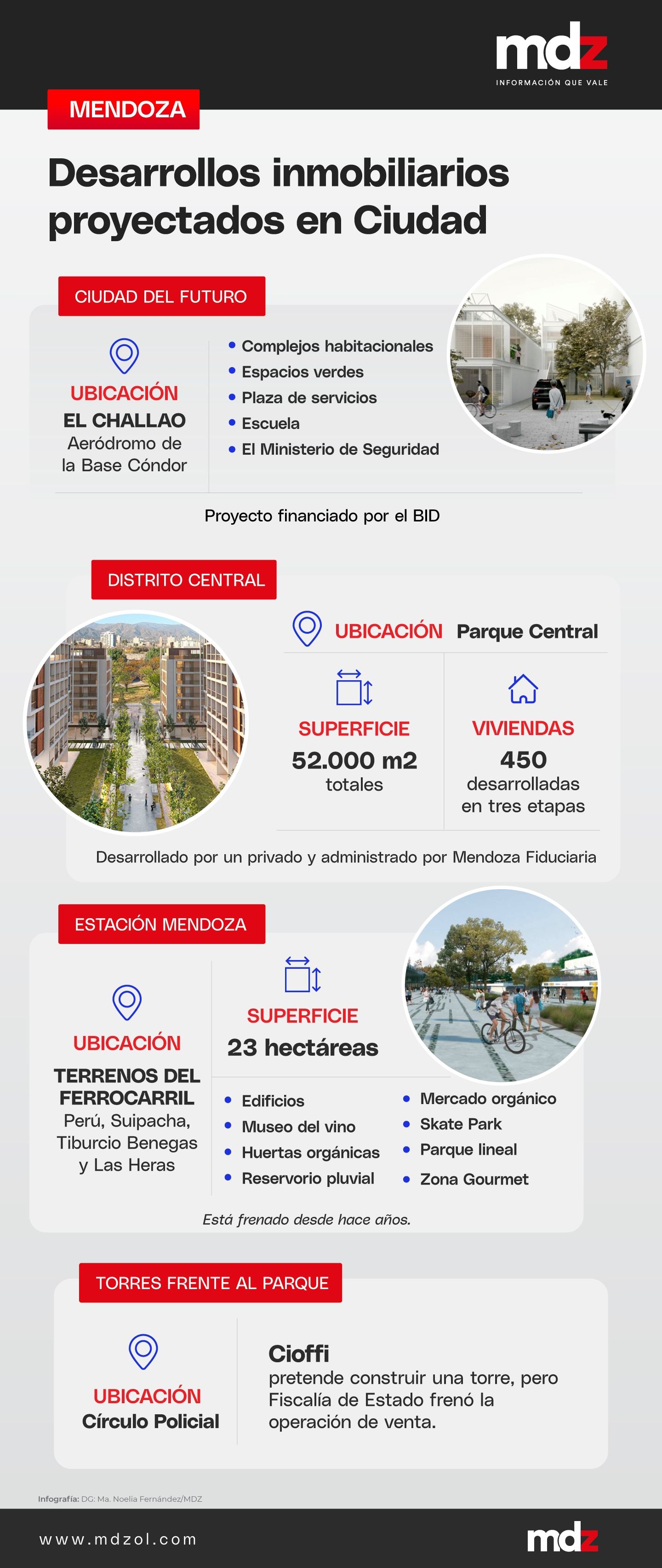 Grandes torres con vista al Parque General San Martín y la cordillera. Enormes emprendimientos inmobiliarios emplazados en espacios ociosos o en el pedemonte capitalino. Existen en la Ciudad de Mendoza una serie de apuestas inmobiliarias que han generado polémica y apuntan a revertir el fenómeno migratorio de los últimos años.