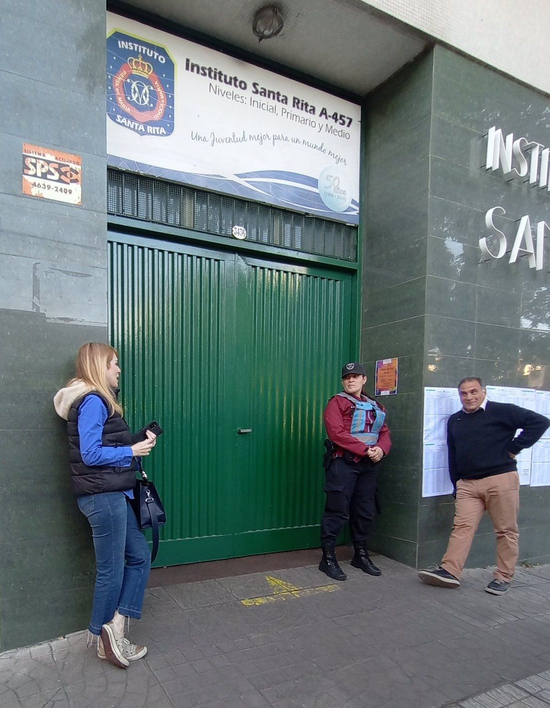 Ocurre que en la puerta del establecimiento educativo se apostaron manifestantes en favor de los Derechos Humanos para rechazar las públicas expresiones realizadas por la candidata a vicepresidenta. Por esa razón, se desplegó una importante custodia integrada por efectivos de la Policía Bonaerense.