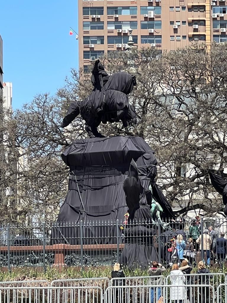 Justo en el peor momento de la campaña y después de haber denunciado al actual Gobierno por todos los medios posibles, Carrió levantó el teléfono para pedirle al presidente que facilitara a su amiga, la artista cordobesa Dolores Cáceres, la intervención al monumento oficial al General San Martín, en la plaza homónima, y permitiera la participación de la banda del Regimiento de Granaderos. La puesta de esa obra titulada “La estrategia del eclipse”, consistió en envolver con telas negras no solo a la escultura de San Martín a caballo, sino a todo el completo escultórico que la rodea y luego descubrirlo al son de marchas militares, tarea en la que se pudo ver a la propia Carrió. Fue un interesante camino para el retorno del diálogo entre Carrió y Alberto y otro elemento más para confundir al sufrido votante argentino que poco entiende ya donde están las diferencias en este atormentado país.