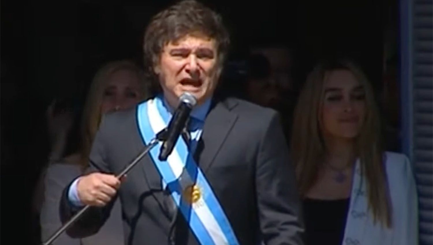 "Hola todos", arrancó Javier Milei, recordando el tema de La Renga. "Hoy comienza una nueva era en la Argentina y comienza una era de reconstrucción de nuestro país", dijo el flamante presidente. Y continuó: "Una voluntad de cambio que ya no tiene retorno. Hoy enterramos décadas de fracasos y peleas sin sentido".