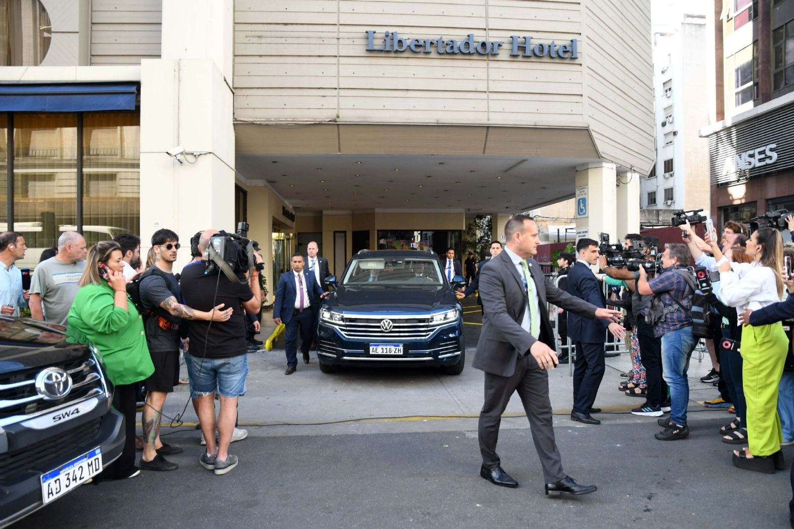 En el día después de asunción, el mandatario nacional salió pasadas las 8 desde el Hotel Libertador rumbo a Casa Rosada para encabezar la primera reunión de ministros de su gobierno, en la que además de los nueve titulares de área participó la vicepresidenta Victoria Villarruel.