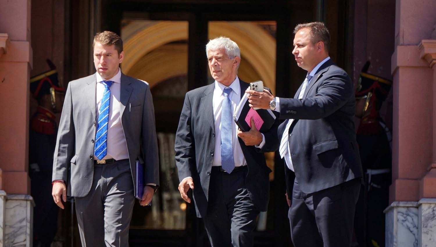 Pasadas las 15, Caputo se cruzó desde la sede del Ministerio de Economía al edificio de Balcarce 50, acompañado por el secretario de Finanzas, Pablo Quirno.