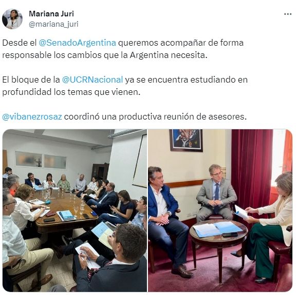 "Desde nuestro espacio se renunció a todos los cargos administrativos y parlamentarios de la cámara, como gesto político de colaboración con la actual administración, mientras que los radicales, Losada y Tunessi, se atornillaron. Esta complicidad es la demostración clara de la unidad por un cargo. Pero como dije al comienzo de este tuit, en algo tenía razón Milei", lanzó Fernández Sagasti.