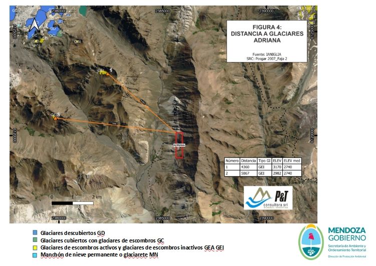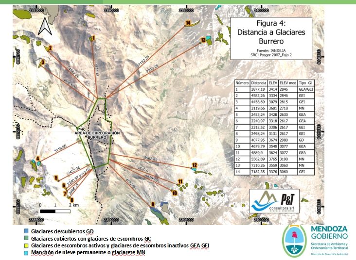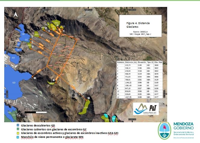 Sobre este último punto, comentaron a MDZ que el "Decreto 820/2006 no decía nada de glaciares y pueblos originarios. Pedimos información sobre la existencia de glaciares. La empresa lo hizo en campo, pero la ley dice que usar el Inventario Nacional de Glaciare y no sólo en línea recta al glaciar desde la exploración. La empresa lo hizo y la información volvió a ser evaluada por la universidad y la conclusión fue que no hay afectación de glaciares".