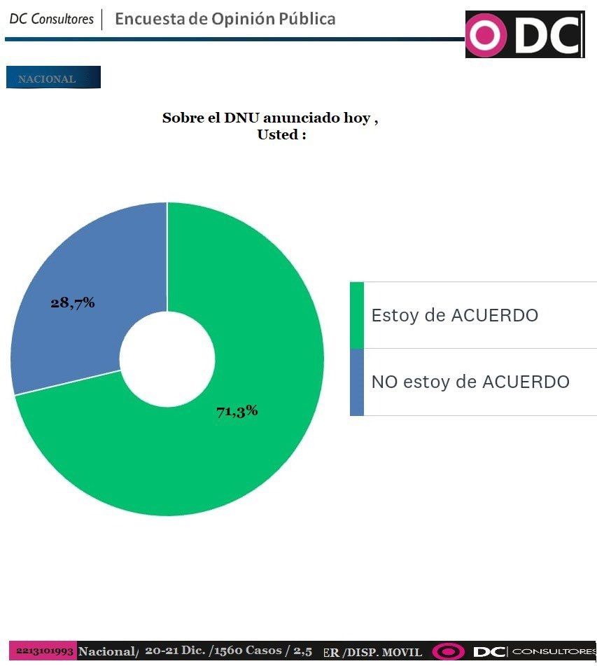 Tomando 1.560 casos, la consultora realizó la pregunta de si "están de acuerdo" con el Decreto de Necesidad y Urgencia lanzado por el Gobierno nacional.