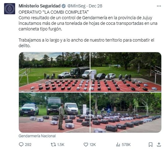 Como si fuese una película de acción policíaca, el Ministerio de Seguridad, a cargo de Patricia Bullrich, recurre al ingenio para potenciar los operativos que realizan la fuerzas de seguridad a lo largo y a lo ancho del país. Es por eso que en las redes sociales del Ministerio, que cambió de mando el pasado 10 de diciembre, el community manager de la cuenta despliega todo su ingenio para captar la atención de los usuarios.