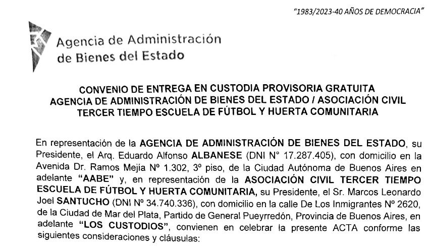 "Actualmente hicimos posesión del predio y su custodia, como lo marca el convenio firmado el 16 de febrero del corriente año y por el cual nos apersonamos. No se instalará ningún asentamiento, sino que allí vivirán quienes trabajen la tierra", argumentaron.