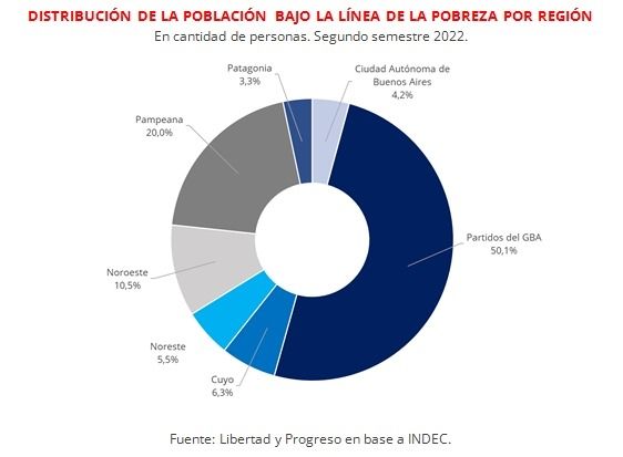 En términos geográficos y pese a la ayuda oficial y los diferentes programas que concentran ayudas y asistencias múltiples en el conurbano, en los distritos del Gran Buenos Aires se concentran el 50,1% del total de pobres del país. Son aproximadamente 9 millones de personas. Están a pocos kilómetros de la centrípeta Capital Federal en términos de toma de decisiones, pero pocos ven o quieren ver. Allí hay gobiernos que pese a este estado de cosas mantienen la hegemonía y el reinado. En el conurbano, además, más del 12% del total de niños menores de 14 años está inmerso en la indigencia. Es decir, no llegan a comer todos los días. En ese contexto se educan, crecen y proyectan su futuro. Si es que lo tienen.