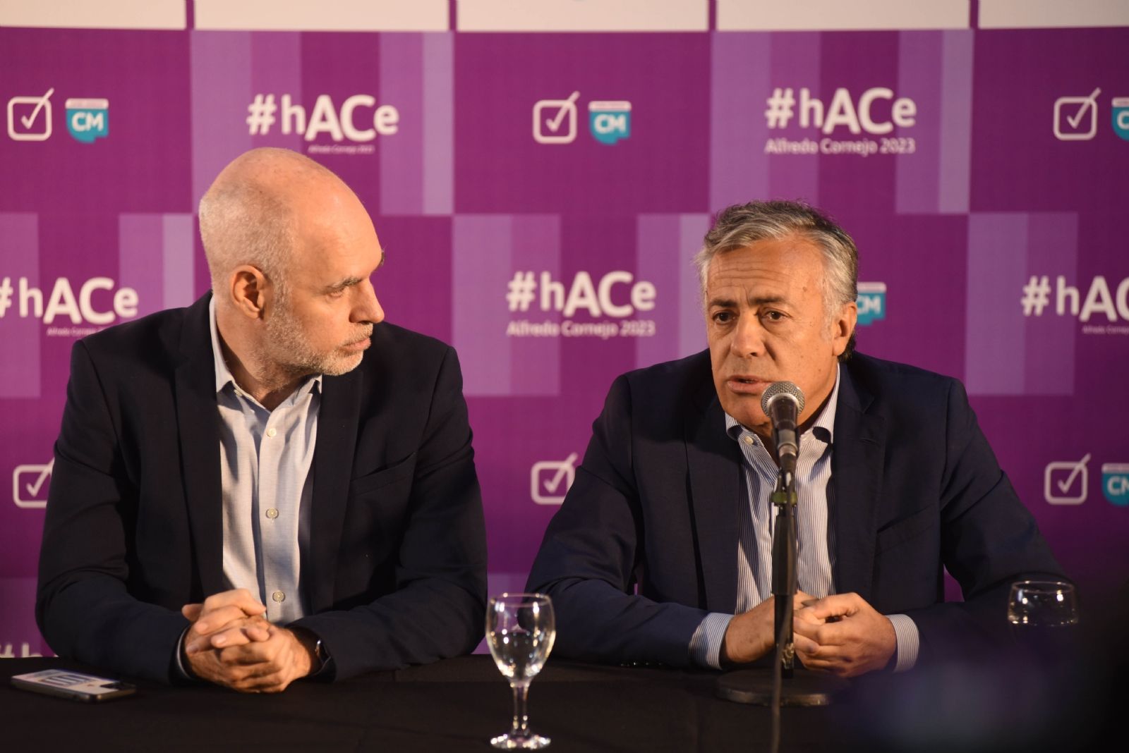 El precandidato a presidente del PRO, Horacio Rodríguez Larreta, llegó este viernes a Mendoza para participar del acto de lanzamiento del frente Cambia Mendoza y respaldar explícitamente la candidatura a gobernador de Alfredo Cornejo por ese espacio. Durante el acto, tanto el jefe de Gobierno porteño como el senador radical lanzaron dardos contra Omar De Marchi, tras su decisión de abandonar la coalición oficialista y competir por la gobernación liderando La Unión Mendocina.