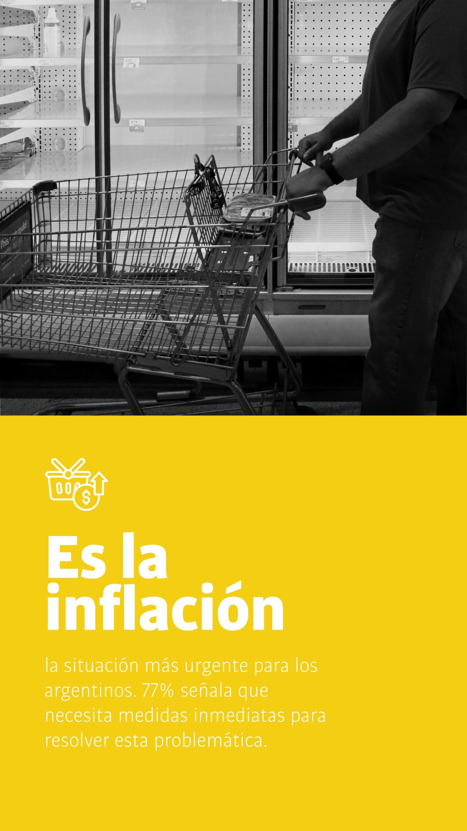 El 77% de los argentinos señala a la inflación como la principal urgencia a resolver. A 1 de cada 2 personas no les queda plata luego de pagar los gastos esenciales. El 95% analiza como imposible acceder a una casa propia.