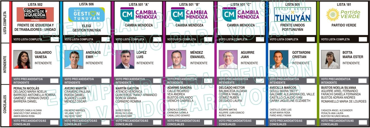 A exactos 23 días de las primeras elecciones del año en Mendoza y del debut de la Boleta Única en las urnas, autoridades confirmaron el diseño que se encontrarán quienes concurran a votar en los comicios del venidero 30 de abril, día en el cual siete comunas irán a las Primarias, Abiertas, Simultáneas y Obligatorias (PASO). En La Paz, Lavalle, Maipú, San Rafael, Tunuyán, San Carlos y Santa Rosa optaron por desdoblarse del calendario provincial y se votará a los precandidatos a intendente.