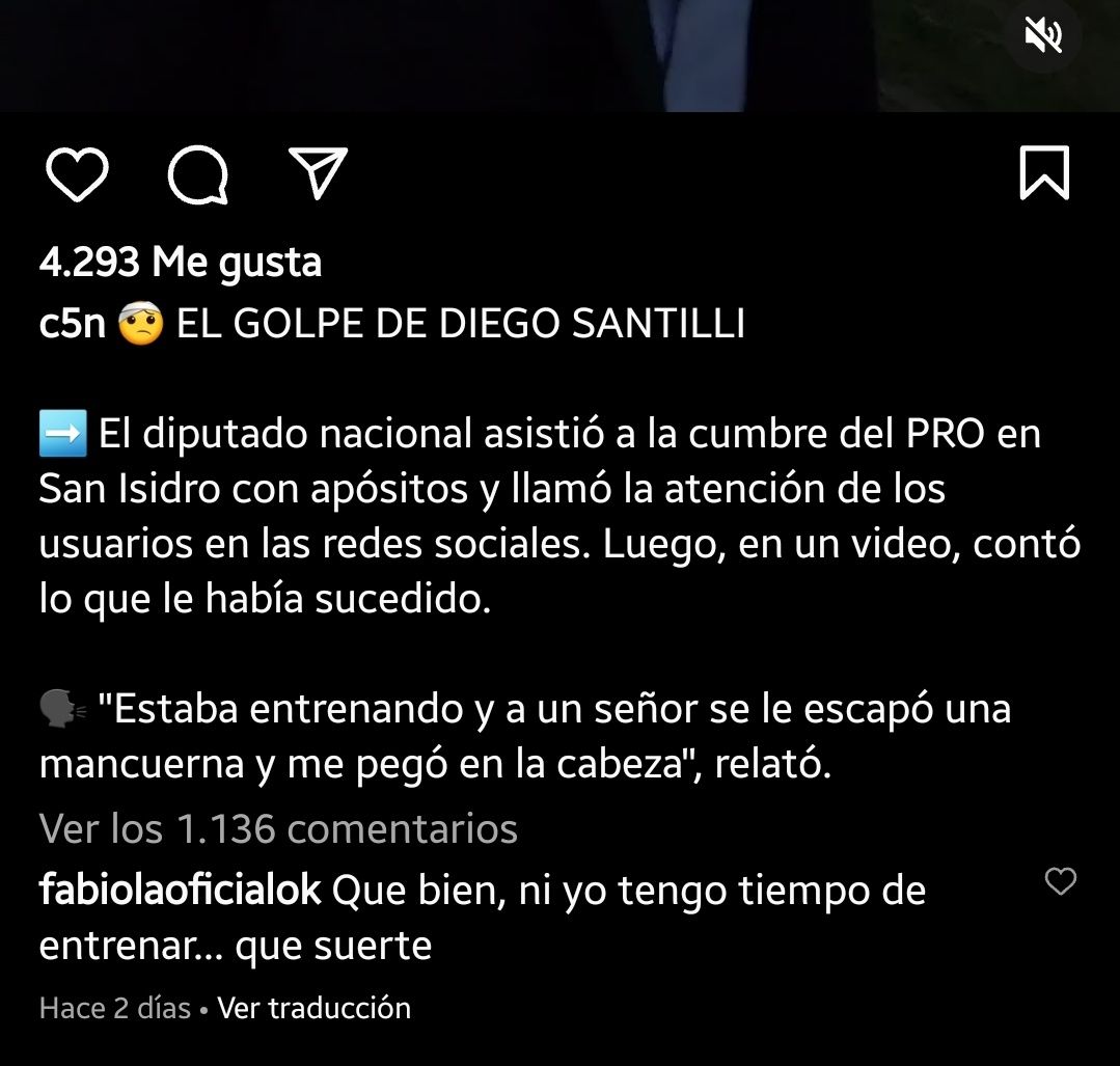 Aunque con esa explicación parecía que la historia concluía, las declaraciones el precandidato de Rodríguez Larreta en la provincia fueron levantadas por varios medios de comunicación, entre ellos C5N, quien en su cuenta de Instagram hizo un posteo en el que contaba lo sucedido.
