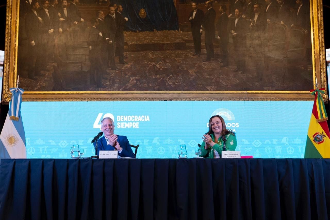 En el marco de los encuentros que se realizan para conmemorar los 40 años de recuperación de la democracia, se organizó en la Cámara de Diputados de la Nación el Conversatorio “Interregno y Democracias Asediadas”, que contó con la participación de Cecilia Moreau y del exvicepresidente de Evo Morales en Bolivia, Álvaro García Linera.