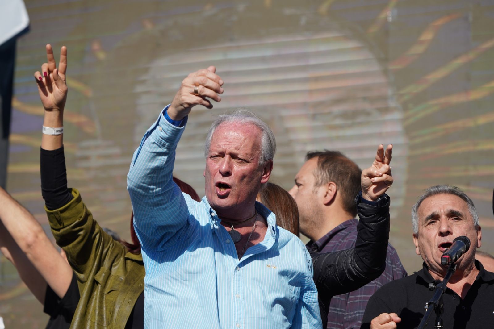 Cuando estaba comenzando el discurso de Héctor Daer, la cara de la CGT durante la presidencia de Alberto Fernández, estallaron los cánticos a favor de Pablo Moyano desde las columnas de Camioneros. “Basta de los que hablan de dolarizar, quieren empobrecernos”, lanzó Daer.