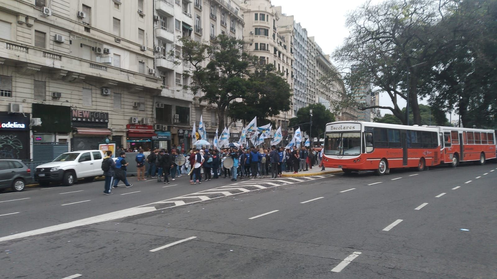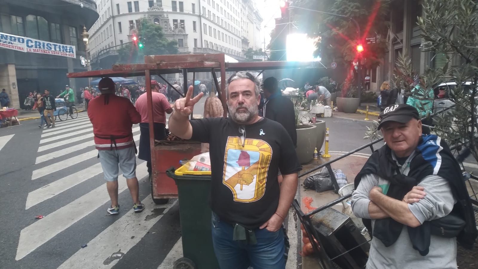 El paso de los militantes de La Cámpora hace complicada la circulación en 9 de Julio. No hay cortes pero las agrupaciones partidarias y sindicales comienzan a reunirse para luego dirigirse en torno al Obelisco y Plaza de Mayo. La Cámpora del Partido de Pilar cortó Cerrito. Los choris y las hamburguesas se venden a $800 y las banderas cotizan en $1.000. Los gorros pilusos cuestan $1.500.