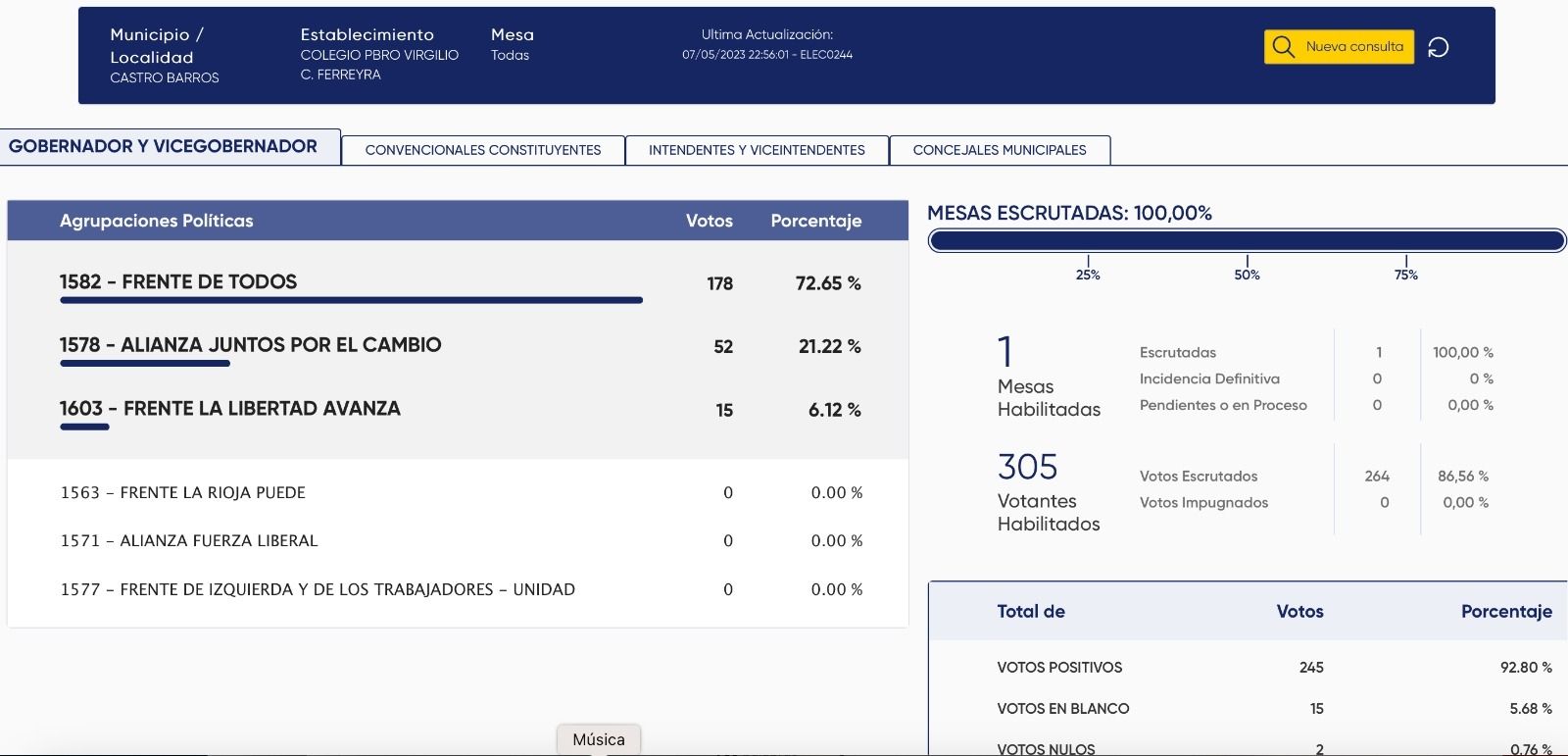 Martín Menem, candidato a gobernador de La Rioja por La Libertad Avanza, el partido libertario de Javier Milei, sufría este domingo una aplastante derrota en el departamento Castro Barros, al que pertenece la localidad de Anillaco, tierra natal de su tío, el exgobernador y dos veces presidente de la Nación Carlos Saúl Menem. Allí solo alcanzó 16 votos.