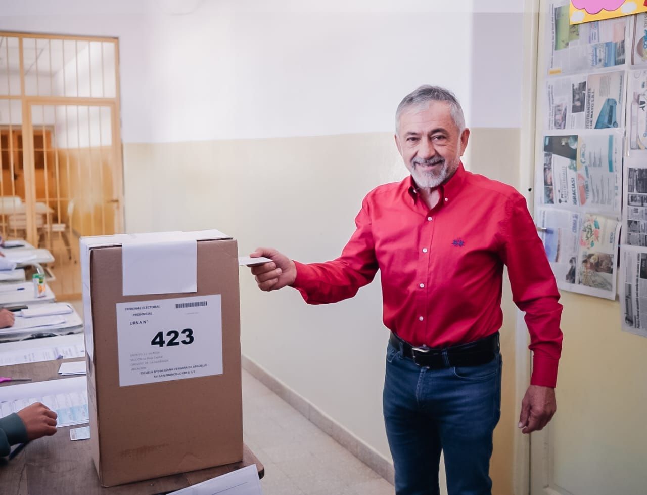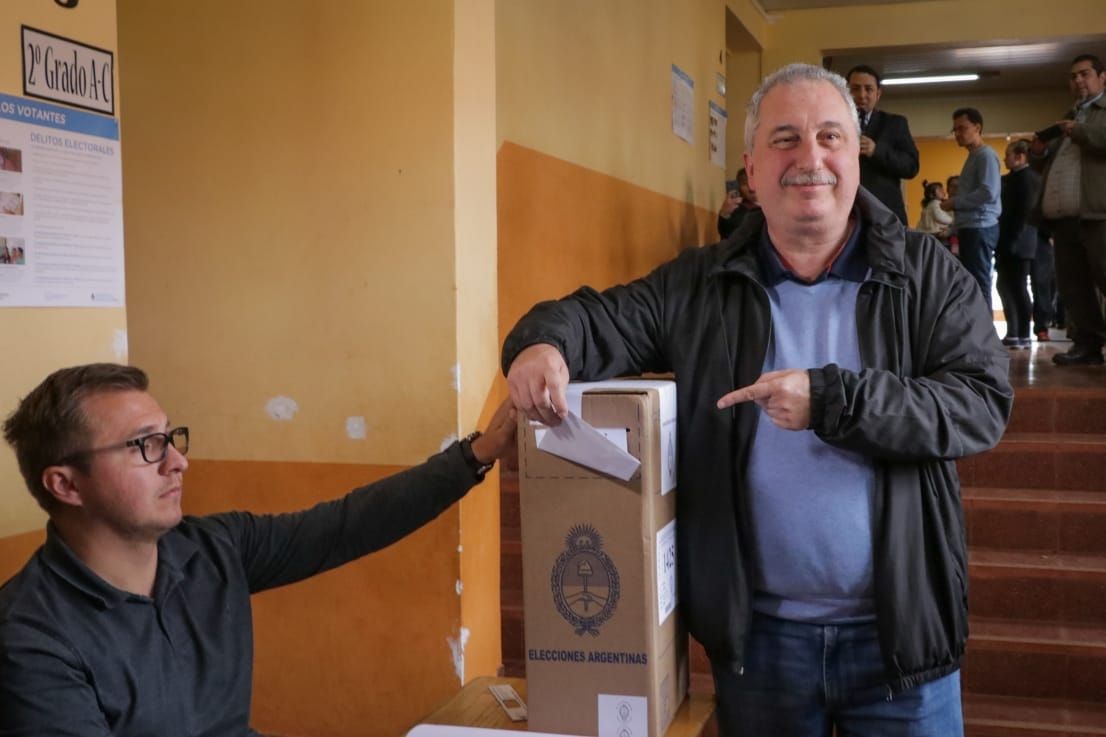 El candidato a intendente por la capital del Frente de Todos, Armando Molina, también se acercó a votar pasado el mediodía en la mesa 423 de la escuela N° 164 "Juana Vergara de Argüello".