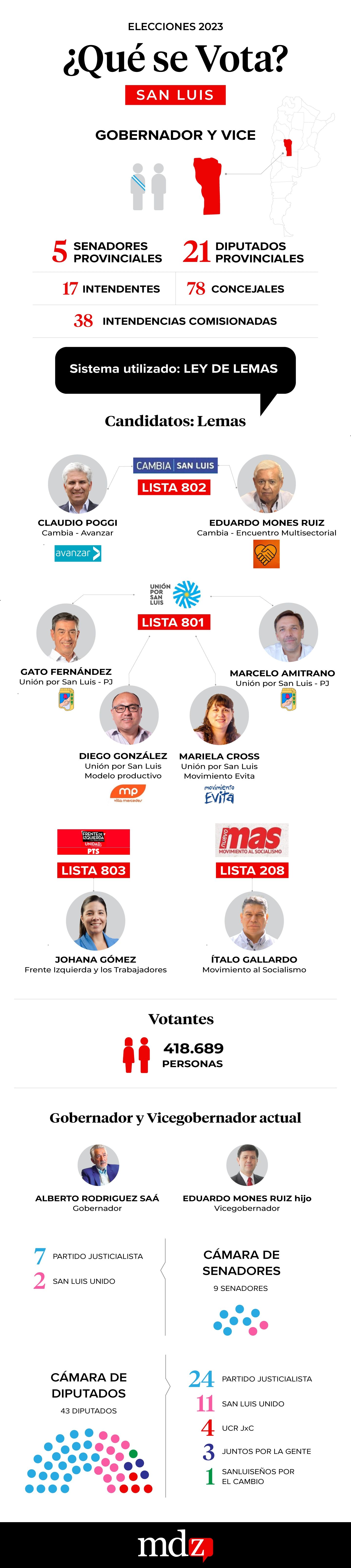 Sin embargo, en 2016, Poggi rompió con el oficialismo y fue electo en 2017 como senador nacional por San Luis representando a la alianza Cambiemos. Desde 2021, se desempeña como diputado nacional por su propio bloque Avanzar San Luis. Y para el 11 de junio, es uno de los candidatos con mayor posibilidad de acceder a la Gobernación en una de las pocas elecciones donde no habrá ningún Rodríguez Saá en las boletas dispuestas en el cuarto oscuro.