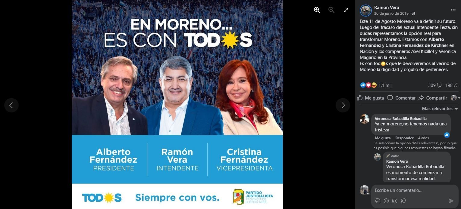 En Moreno, la apuntada es Andrea Vera, la hija del excandidato a intendente Ramón Vera Chávez, quien compitió en 2019 dentro de las filas del Frente de Todos bajo la boleta del presidente Alberto Fernández y la vicepresidenta Cristina Fernández de Kirchner. En General Rodríguez, aparece Sandro Paggi.