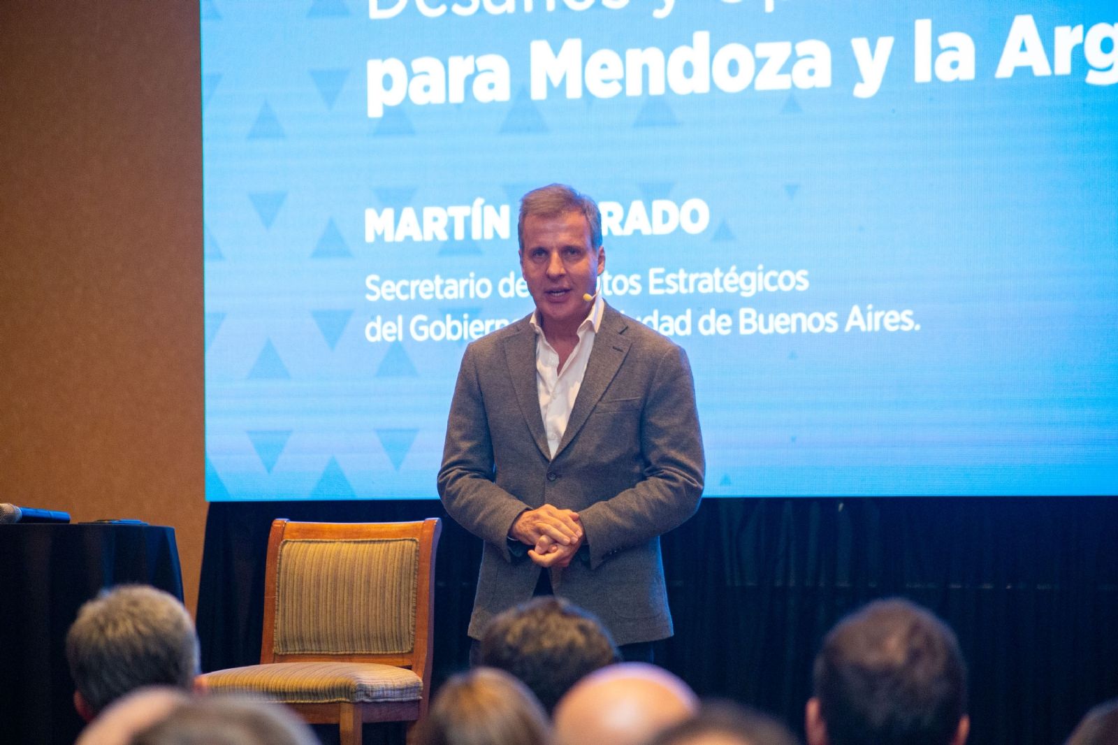 Tras las palabras del intendente, subió al escenario Martín Redrado para comenzar su exposición hablando del presente y futuro del país. “Es un placer estar aquí. Con Ulpiano nos conocimos hace unos meses en una cumbre de ciudades que se realizó en Denver y, en estos seminarios, son importantes las presentaciones públicas, pero más lo son las conversaciones privadas. Y a partir de allí, coincidimos en una visión común de lo que Mendoza y Argentina necesitan hacia el futuro”, indicó Redrado.