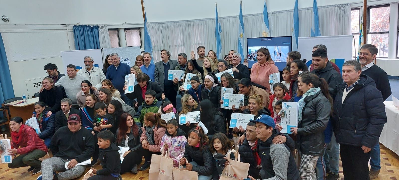 El acto de entrega de viviendas se hizo en conjunto con la Nación vía streaming. En San Rafael el orador fue Emir Félix y en Buenos Aires, el secretario de Coordinación del Ministerio de Desarrollo Territorial y Hábitat, Marcos Aguilar.