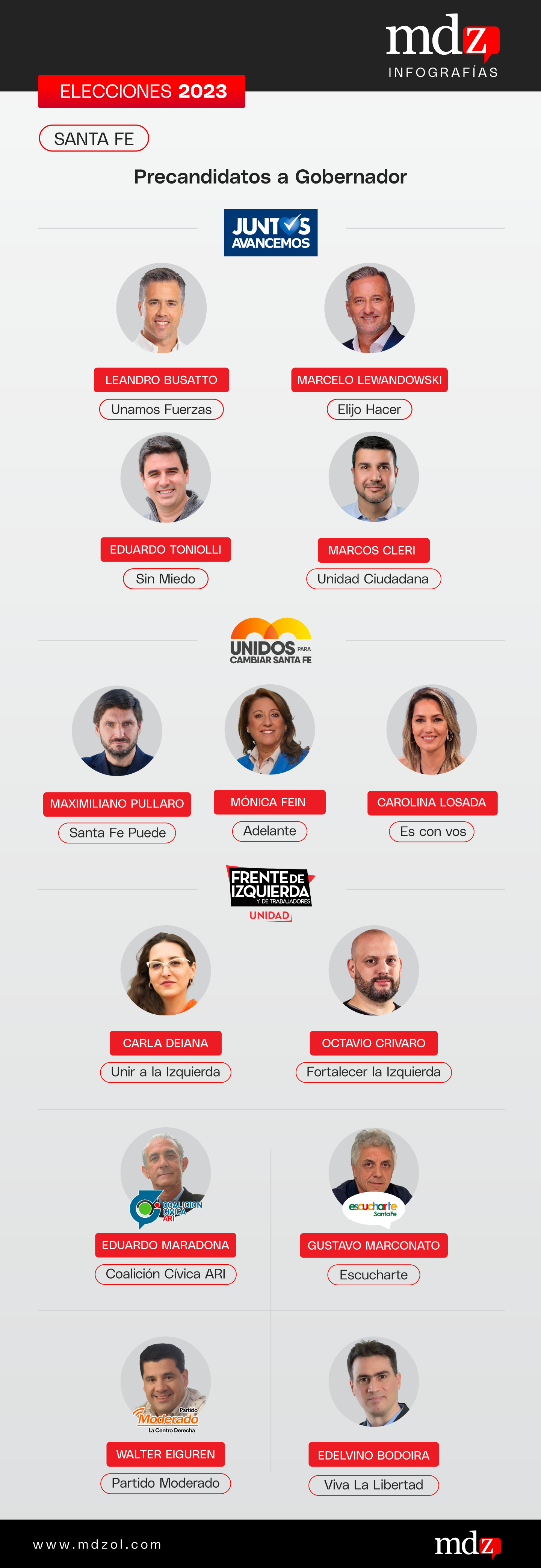 En las PASO del domingo en Santa Fe se elegirán cinco categorías: gobernador y vice, diputados, senadores provinciales, intendente y concejales. En ninguna de ellas aparece el nombre de La Libertad Avanza, pero sí precandidatos que comparten ciertas miradas que Milei propone. Si bien desde un primer momento aclararon que no participarían de comicios provinciales fueron muchos los que se pegaron a su imagen atentos al crecimiento en las encuestas.