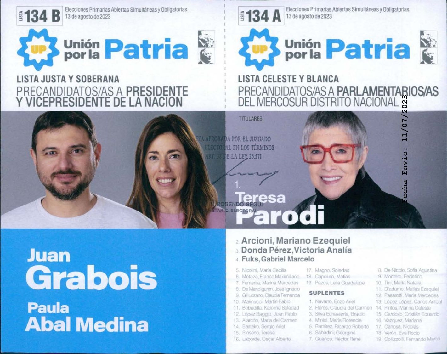 Tras varios idas y vueltas, las fórmulas conformadas de Unión por la Patria serán la encabezada por Sergio Massa junto a Agustín Rossi, por un lado, y Juan Grabois, en compañia Paula Abal Medina, por el otro.