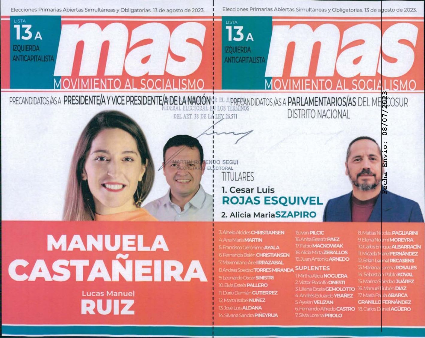Además, la propuesta de la izquierda se completará con la candidatura de Manuela Castañeira por el “Nuevo MAS” y de Marcelo Ramal por el partido Política Obrera.
