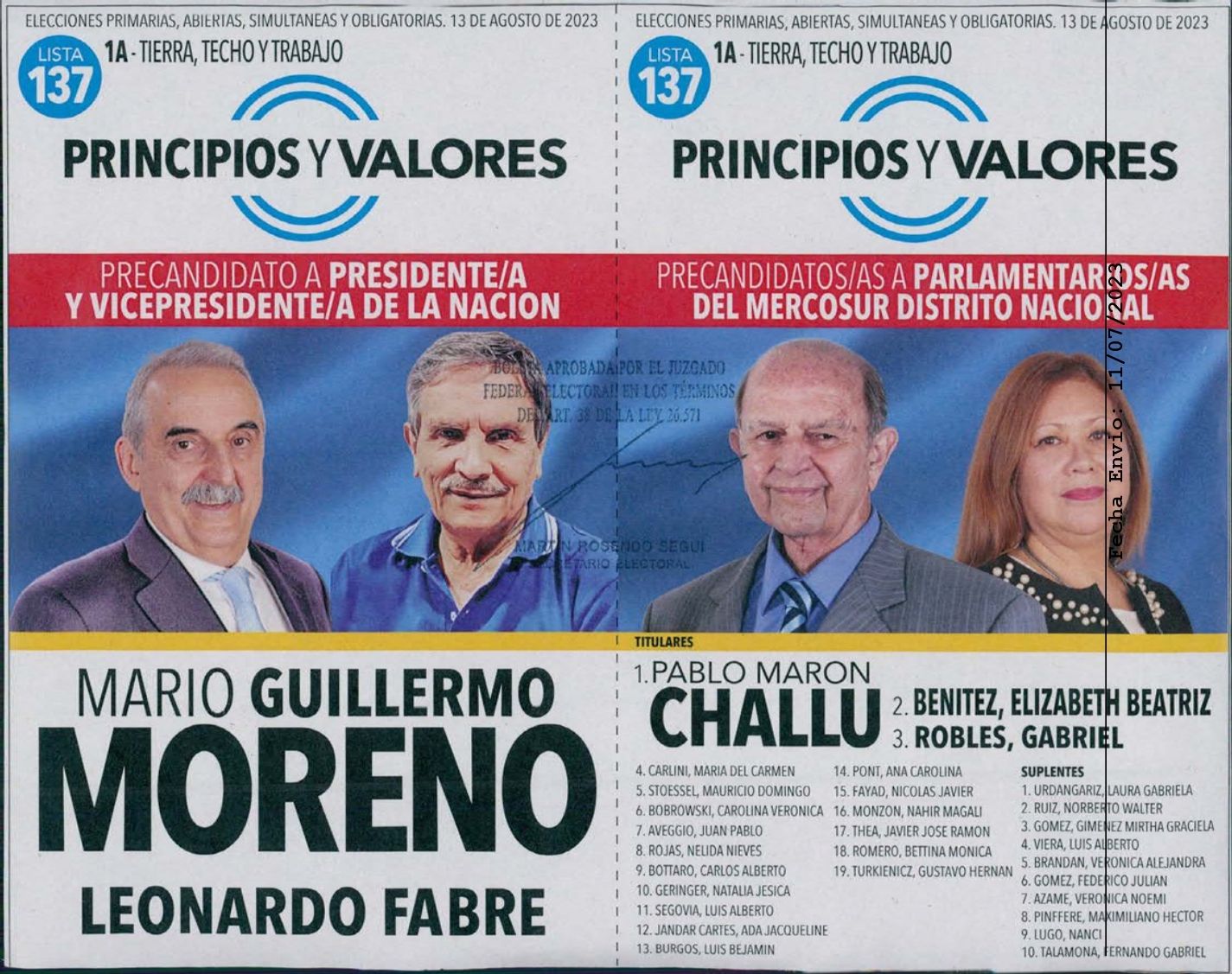 El partido Principios y Valores, del exsecretario de comercio Guillermo Moreno, tendrá la mayor oferta electoral en el cuarto oscuro, con cinco fórmulas presidenciales.