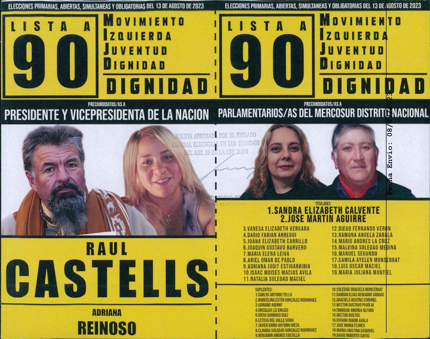 El Movimiento Izquierda Juventud Dignidad llevará dos nombres de peso para competir entre si: el dirigente piquetero Raúl Castells, líder del Movimiento Independiente de Jubilados y Desocupados versus el controversial empresario y periodista Santiago Cúneo.