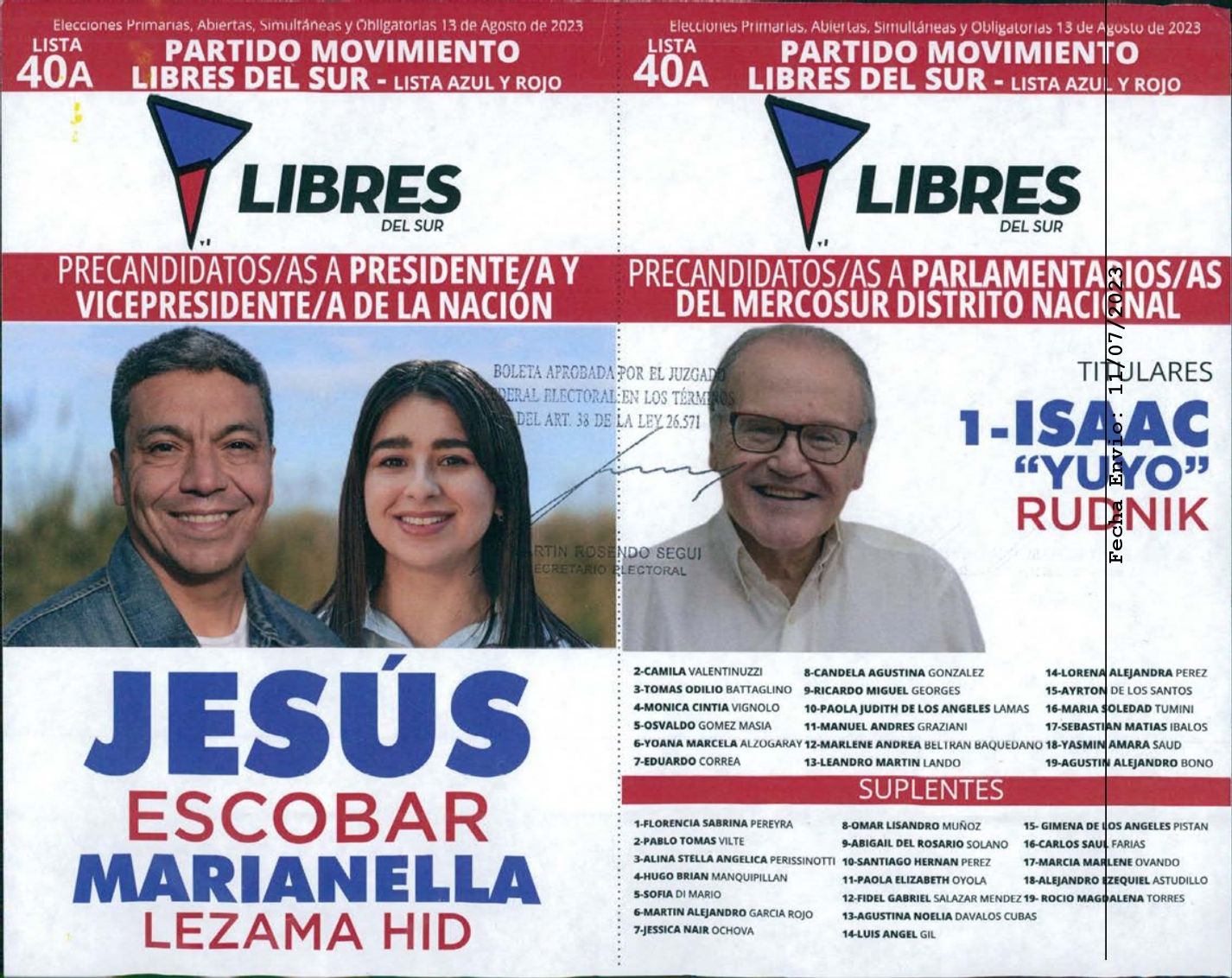 Finalmente quedaron oficializadas las boletas de candidatos a presidente que estarán en el cuarto oscuro el próximo 13 de agosto de cara las elecciones presidenciales de Argentina 2023. La Justicia Electoral Nacional las aprobó de acuerdo con el cronograma estipulado para 30 días antes de la fecha oficial de las elecciones PASO.