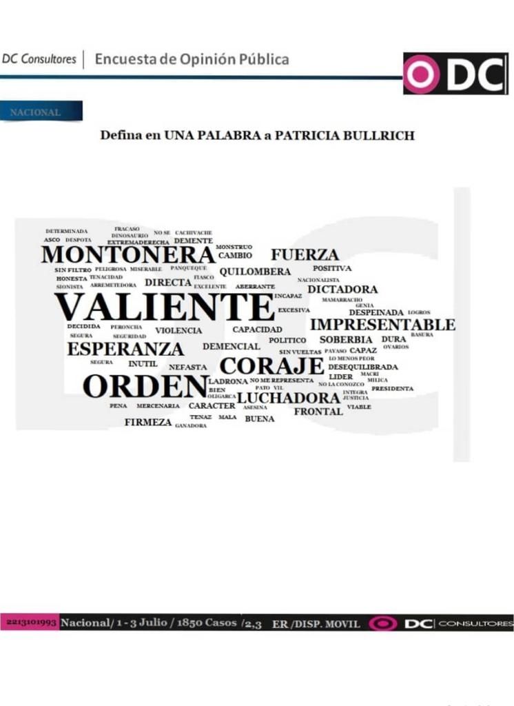 “Cuando nosotros preguntamos cómo definirían en una palabra a los candidatos con más chances de dirigir los destinos del país; los guarismos positivos de Bullrich son los que tienen que ver con la situación que se está viviendo: valentía, coraje, orden y fuerza, que es lo que no tuvo el gobierno de Alberto Fernández. Creo que el momento social ha hecho que crezca la figura de Patricia Bullrich”, subrayo el consultor.