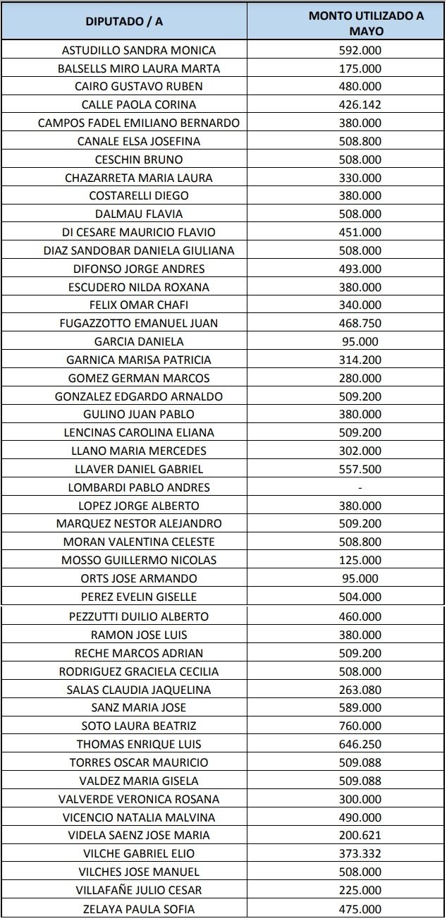 No obstante, al analizar el monto total utilizado por cada uno de los integrantes del cuerpo, hay que hacer la salvedad de que en mayo del año pasado se produjo el recambio en las bancas legislativas tras las elecciones de medio término de 2021. Es por esta razón que algunos ha sido dispar la cantidad de meses ocupó el cargo cada legislador, ya que algunos lo hicieron solo entre enero y abril, otros entre mayo y diciembre y los que fueron reelectos todo el año.