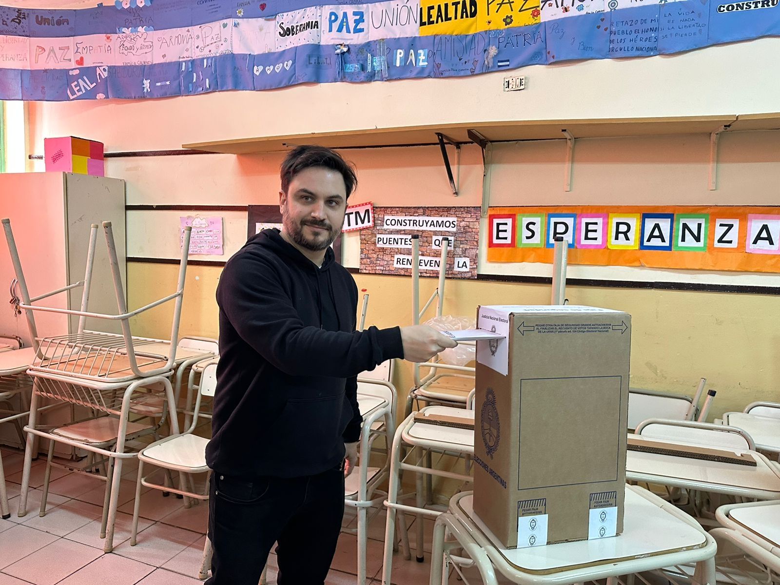 El candidato por La Libertad Avanza, Ramiro Marra, votó en la escuela Santa María de los Ángeles del barrio de Saavedra. "Hoy es un día muy importante. Es el día en donde nos toca a los argentinos y porteños elegir qué país y ciudad queremos para el futuro. Por eso quiero pedirle a todos que vayan a votar, no se pierdan esta oportunidad histórica, que si uno no vota, los demás votan por uno", declaró tras emitir su voto.