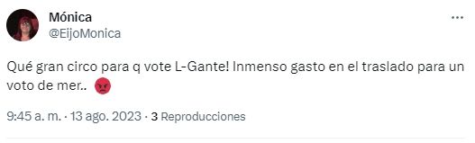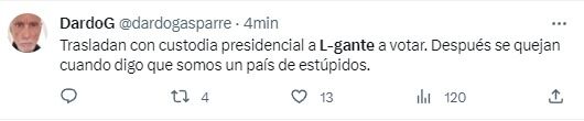 En las redes sociales también se hizo sentir la indignación por el operativo que se montó para que L-Gante pudiera ejercer su derecho a voto en estas elecciones.
