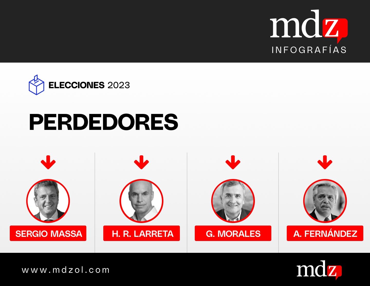 Alberto Fernández, por último, también termina siendo uno de los caídos. A pesar de que no tuvo protagonismo en la campaña, el peronismo bajo su gestión terminó rompiendo su piso histórico y cayó debajo del 30%.