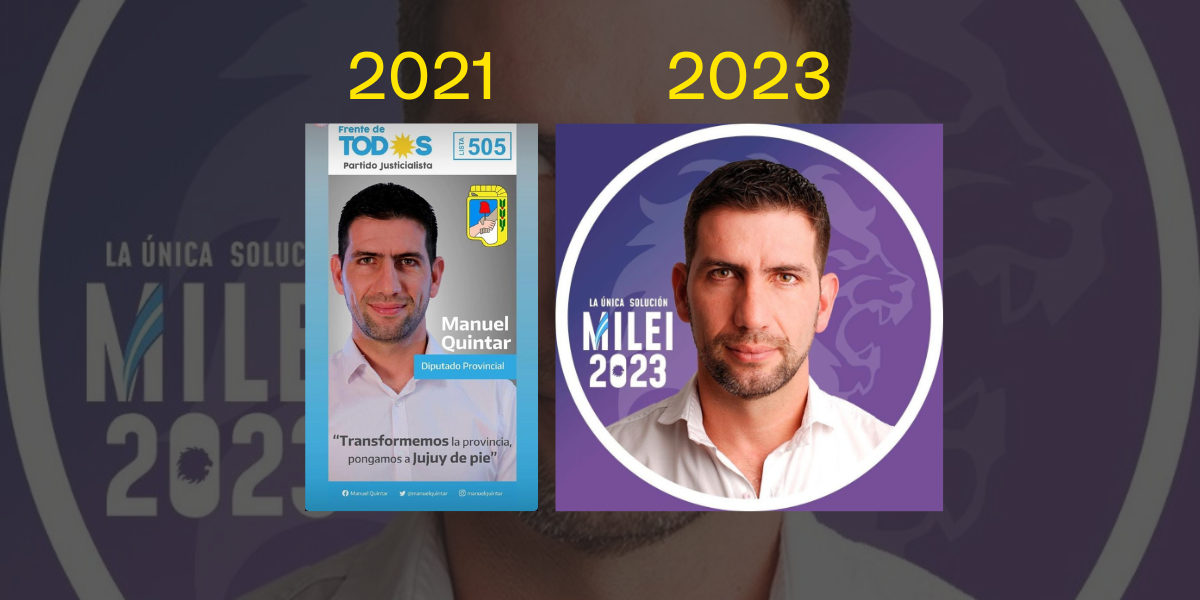 Manuel Quintar es el primer candidato a entrar a la Cámara de Diputados por Jujuy en el espacio mileísta. Se trata de un ex candidato a diputada provincial por el Frente de Todos, bajo el ala del PJ de Rubén Rivarola. “Transformemos la provincia, pongamos Jujuy de pie”, fue el eslogan con el que hizo campaña en 2021. Todavía es una incógnita si este abogado de 41 años, al igual que varios de los dirigentes que llegarían al Congreso con el apoyo de Milei, formarán parte de un bloque libertario unido.