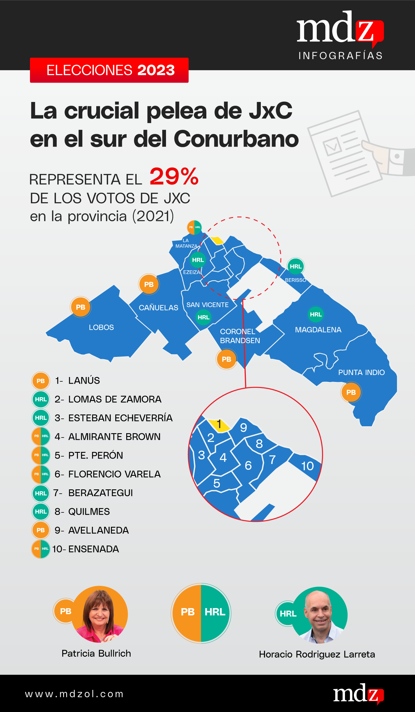En Berazategui los voceros del PJ bonaerense sostienen que la presidenta del PRO con licencia puede dar la sorpresa y ganarle a Larreta. A su vez, el candidato de las palomas aparece como favorito en Ensenada y Berisso. Todo parece indicar que en la suma final de la Tercera, el larretismo podría imponerse pero aparentemente sin el margen que espera. Más allá de los pronósticos de unos y otros, la moneda sigue en el aire.