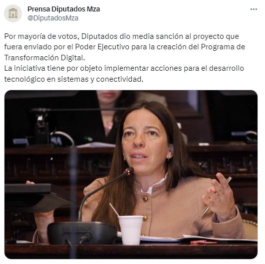 La Cámara de Diputados de la Legislatura provincial, por mayoría de votos, dio media sanción a un proyecto para la creación del Programa de Transformación Digital, una iniciativa que fue ideada por el gobernador Rodolfo Suarez.