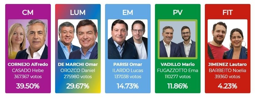 Las tendencias no fallaron en Mendoza y Alfredo Cornejo, con el 39,50% de los votos, fue electo gobernador de la provincia para continuar con la gestión de Cambia Mendoza, actualmente en manos de Rodolfo Suarez.