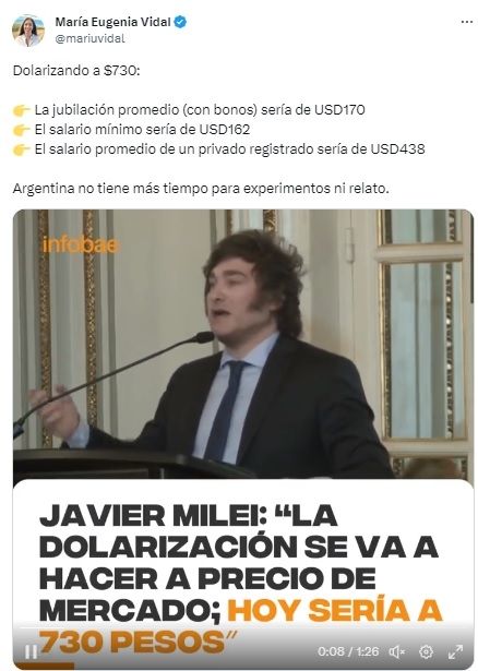Vidal le pegó a Milei por la dolarización y anticipó cuánto cobraría un jubilado