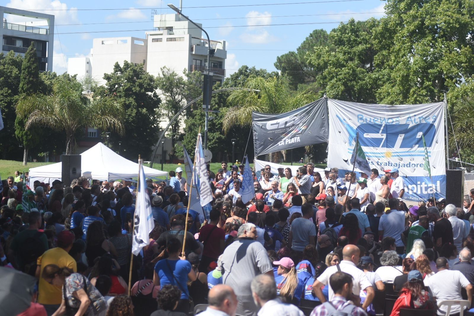El encuentro, del que participaron cerca de mil personas, se llevó a cabo en Plaza Belgrano y contó entre otros con la participaron del titular de la CTA Autónoma, Hugo “Cachorro” Godoy, el secretario general de la CTA Autónoma bonaerense, Oscar “El Colo” de Isasi, y el titular del SUTEBA y secretario general de la CTA bonaerense, Roberto Baradel. Además estuvieron allí legisladores, funcionarios municipales y provinciales, la CGT regional, organizaciones sociales y militantes.