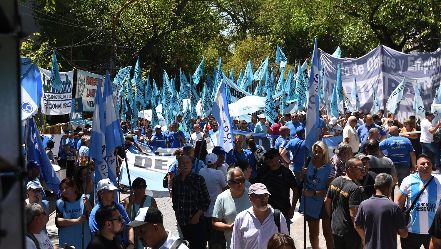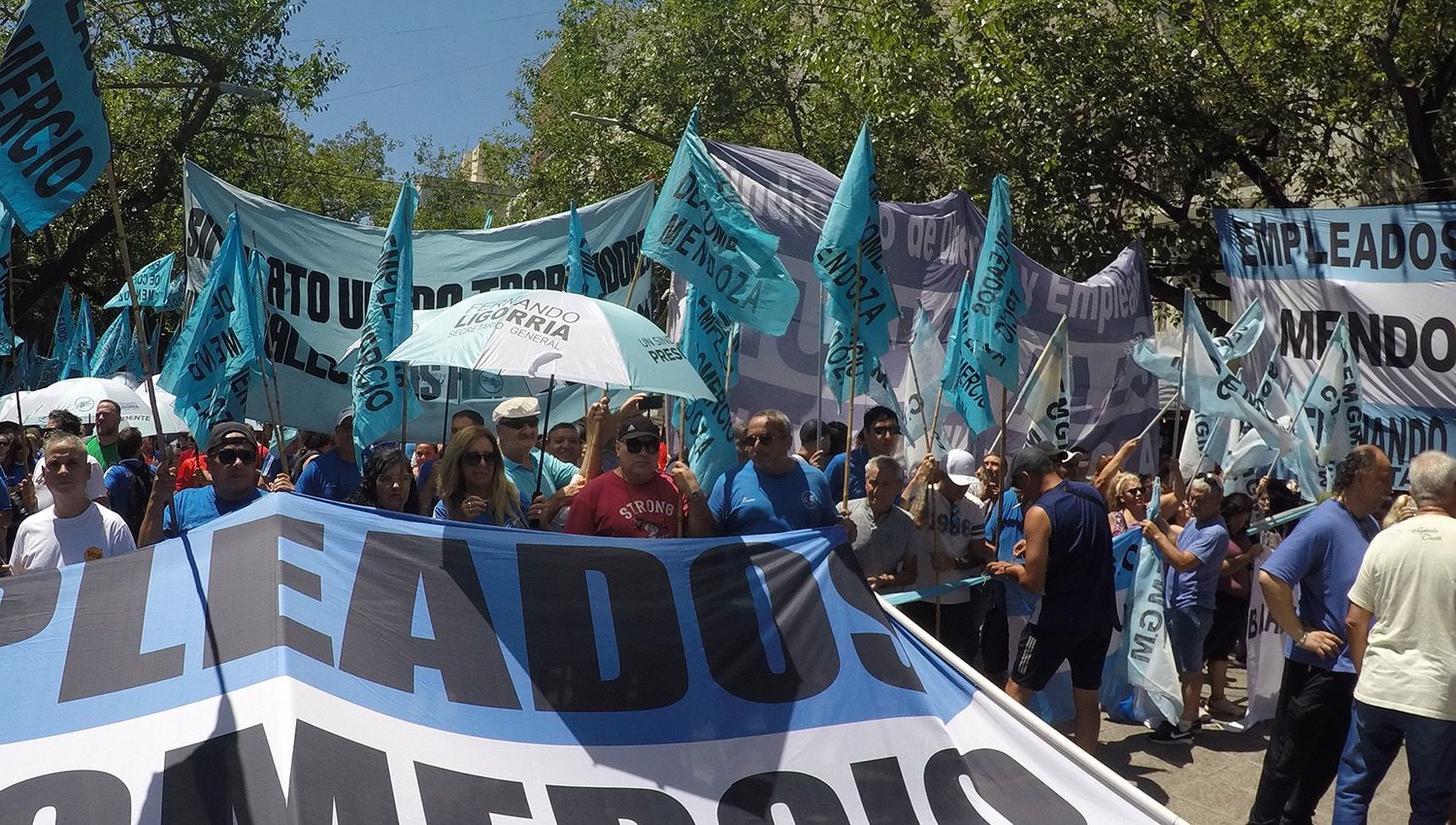 Las inmediaciones de la Legislatura provincial fueron el epicentro del paro nacional convocado por la Confederación General del Trabajo (CGT) y otras centrales obreras para este miércoles. Desde el mediodía se concentraron en la peatonal Sarmiento, sin cortar el tránsito en calle Patricias Mendocinas, manifestantes nucleados en sindicatos privados y estatales. A su vez, también dijeron presente algunos dirigentes peronistas y de izquierda.