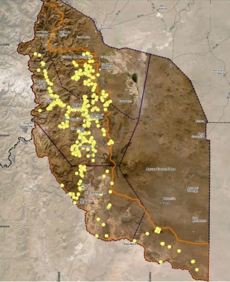 En el Informe de Impacto Ambiental indica que hay casi 500 puestos relevados. En el distrito Malargüe hay registrados 82 puestos. El Distrito Río Grande es el más importante y hay 297 puestos. En el Distrito Barrancas se censaron 52 puestos y en Agua Escondida 15 puestos.