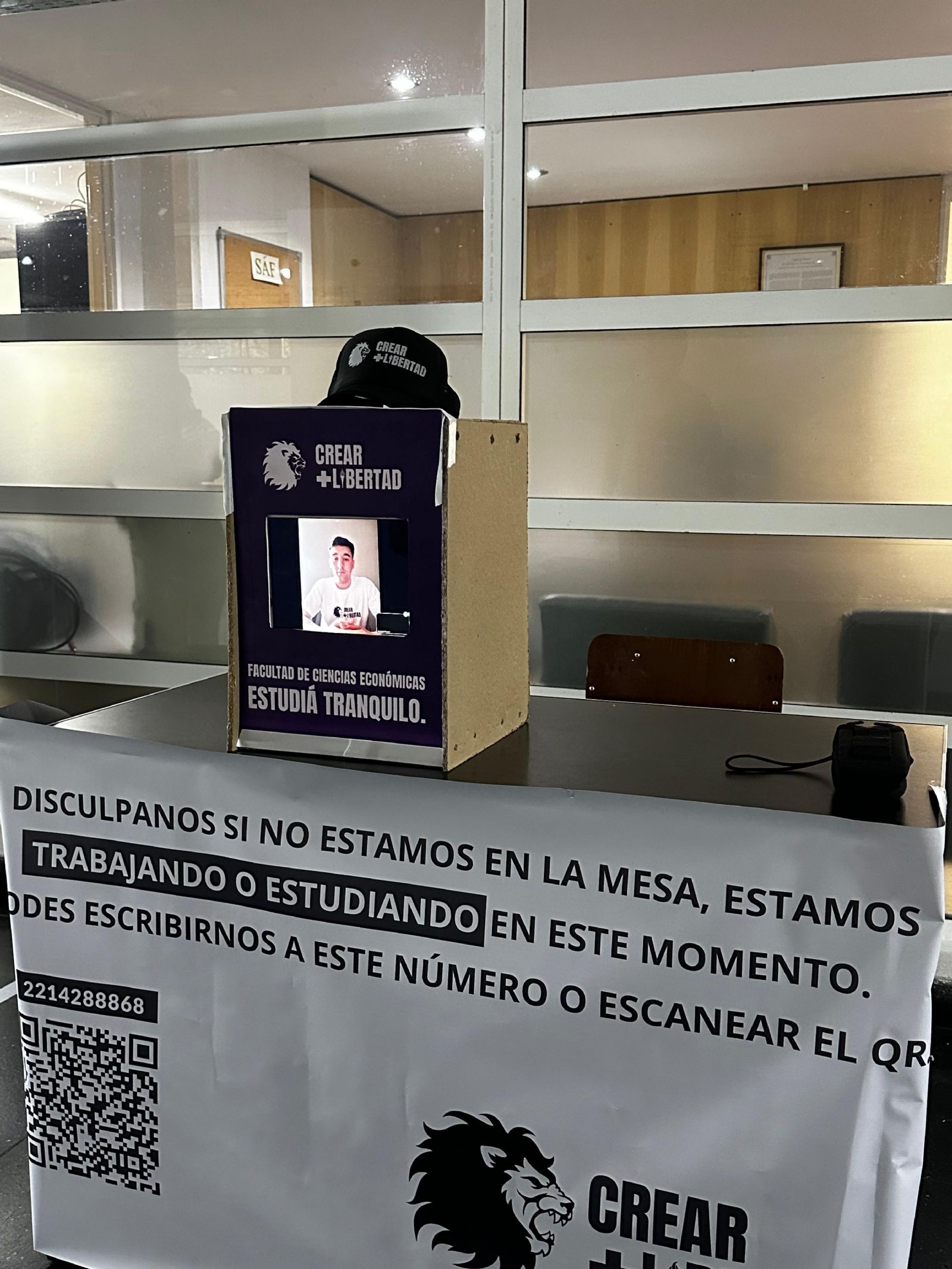 Bajo el lema "Estudiá Tranquilo", la agrupación libertaria Crear +Libertad, busca dar el batacazo en las elecciones del centro de estudiantes universitarios de la Facultad de Ciencias Económicas de la Universidad Nacional de La Plata (UNLP). Para eso, los seguidores de Milei implementaron una forma muy particular de hacer política mediante un tótem digital que les permite llevar el mensaje libertario, sin perder horas de estudio y sin exponerse a las agresiones continuas de los militantes kirchneristas y de la izquierda.