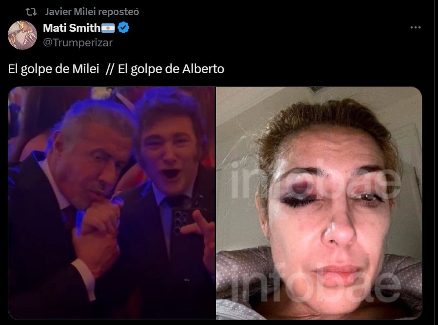 Al encuentro le siguió una oleada de reposteos de Milei en sus redes a diferentes publicaciones que compartían sus seguidores. Una de ellas comparaba al jefe de Estado con el boxeador argentino Ringo Bonavena. Otro que levantó polémica fue una comparación entre "el golpe de Milei", representado por la foto con Stallone, y "el golpe de Alberto Fernández", seguido por una foto de la exprimera dama Fabiola Yañez con el ojo morado.