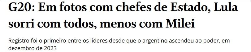 “G20: En fotos con jefes de Estado, Lula sonríe con todos menos con Milei”, titula el medio local sobre el evidente incómodo momento que vivieron los mandatarios sudamericanos en Río de Janeiro.